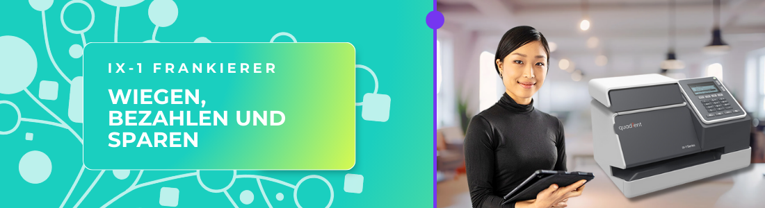 Die neue iX-1 wurde für Unternehmen mit kleineren Postaufkommen entwickelt und vereinfacht den Versand dank präziser Portokosten und integrierter Rabatte. Schluss mit manuellen Briefmarken und überhöhten Portokosten.